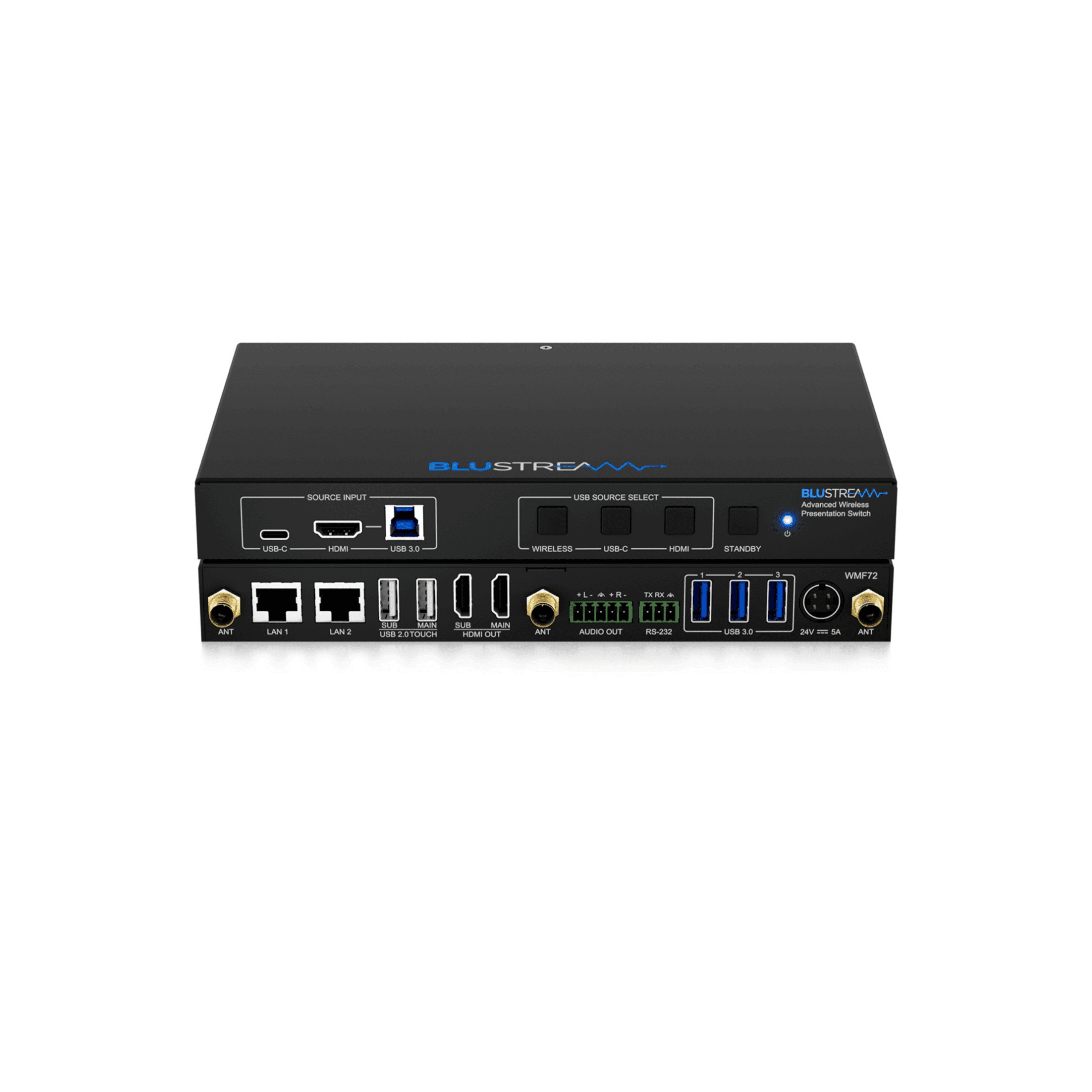 The WMF72 is a new and advanced 4K multi-format presentation switch what includes wired HDMI and USB-C, AirPlay, Miracast® and Chromecast® inputs to dual HDMI outputs. The WMF72 is also compatible with Blustream WMF-USBC-D and WMF-HDMI-D plug & play wireless dongles, providing a great BYOD solution for your boardroom, classroom or huddle-space application.