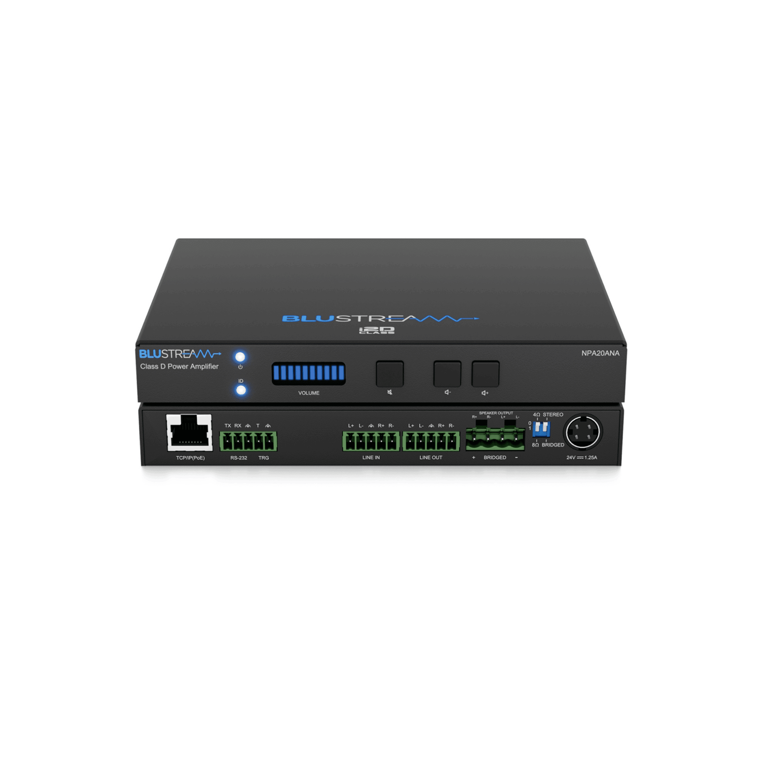 2x10W Analogue Audio Networked Power Amplifier with PoE LAN, 4/8 ohm Speaker Support