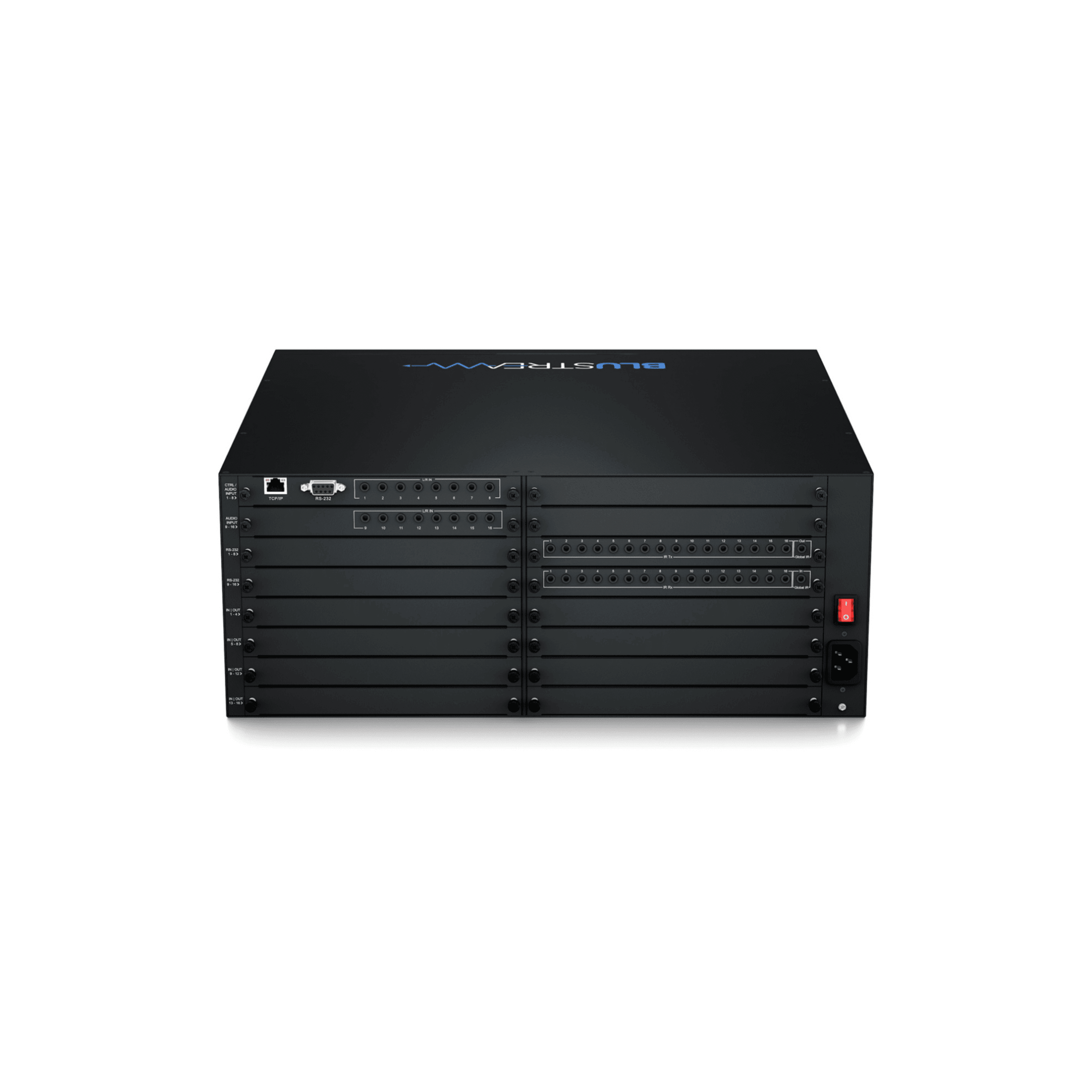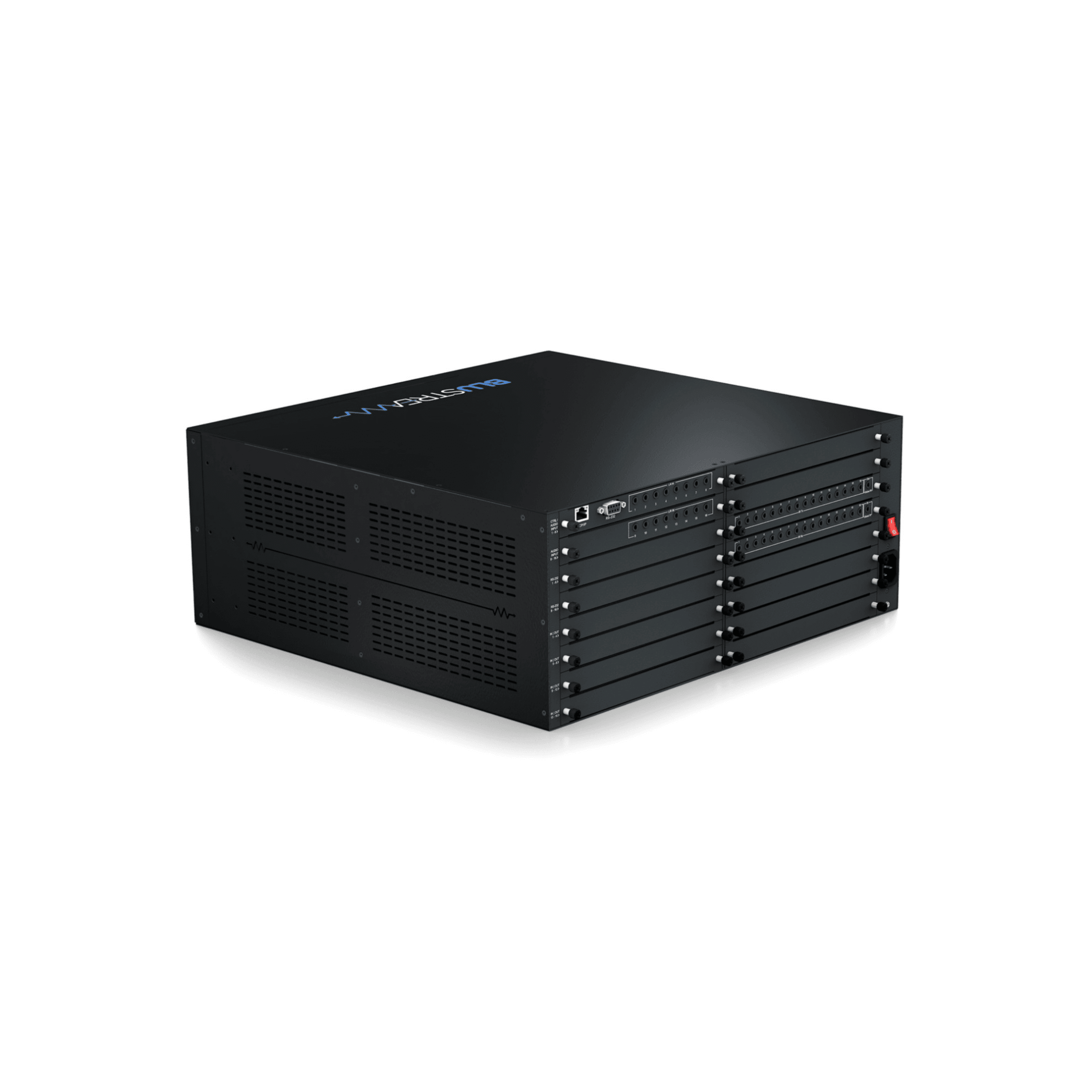 • Supports up to 16x video inputs and 16x video outputs using a combination of 2-way and 4-way interchangeable input and output boards