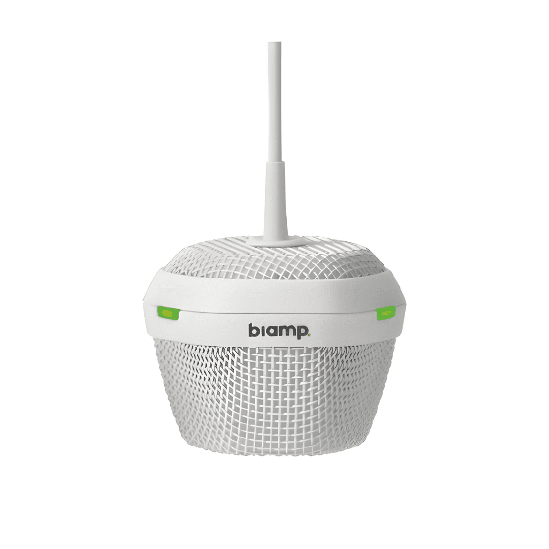 The Biamp Devio DCM-1 Beamtracking™ hanging microphone is an excellent fit for collaborative meeting spaces by providing full 360° audio coverage which utilizes three zones of 120°. The DCM-1 can also accommodate different room sizes and installed heights with four software-selectable elevation-angle modes and adjustable mic height. It easily connects with a single cable and can be daisy chained to larger spaces. The DCM-1 is available in black and white finishes for seamless décor matching, making it ideal for hybrid working strategies and conference behaviour.