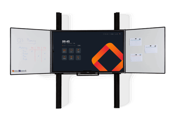 Setup options are limitless. This solution can be set up with solely a single flat panel, or it could be set up with additional surfaces, with the option for add-ons. Interactive flat panel mounts are compliant with the VESA standard.