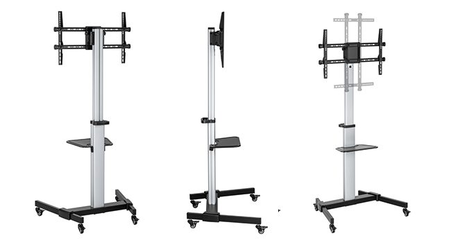 This stand is compatible with most 37”-86” screens, boasting a maximum weight capacity of 50kg ), ensuring secure support for a variety of TVs. Its versatility extends to the ability to rotate the screen 90° from landscape to portrait positions, offering flexibility in display options. With a total height of 1695mm, it provides an elevated viewing experience. It supports VESA patterns up to 600x400mm, accommodating a wide range of mounting configurations.