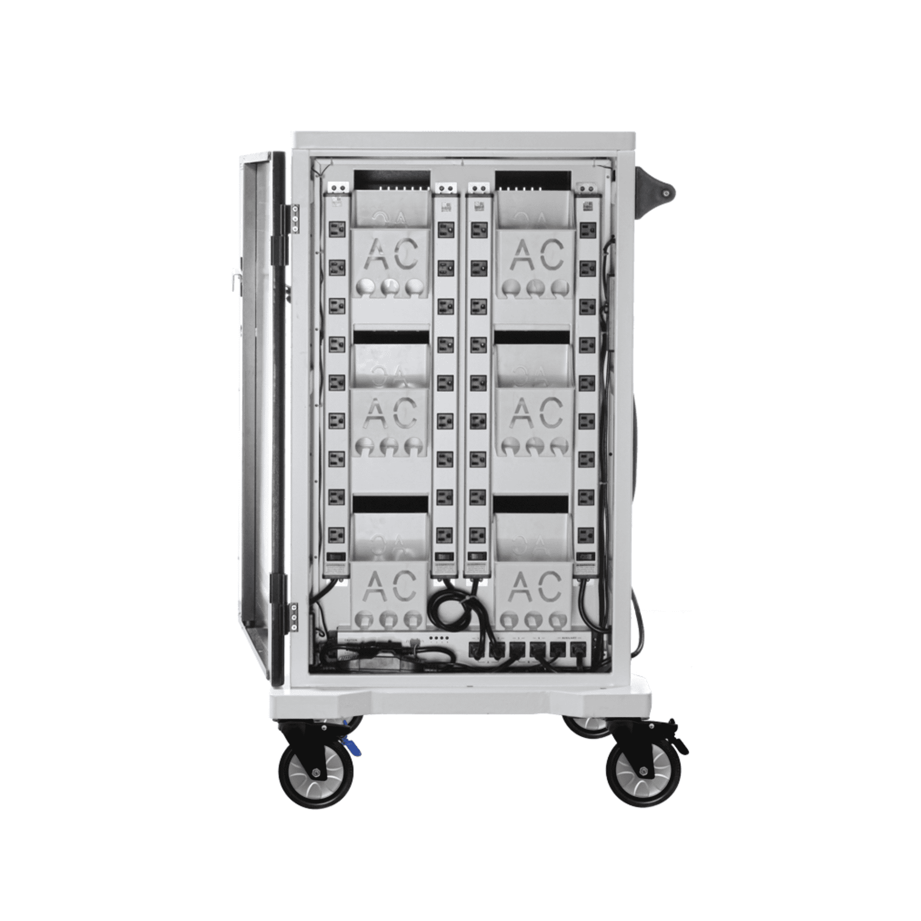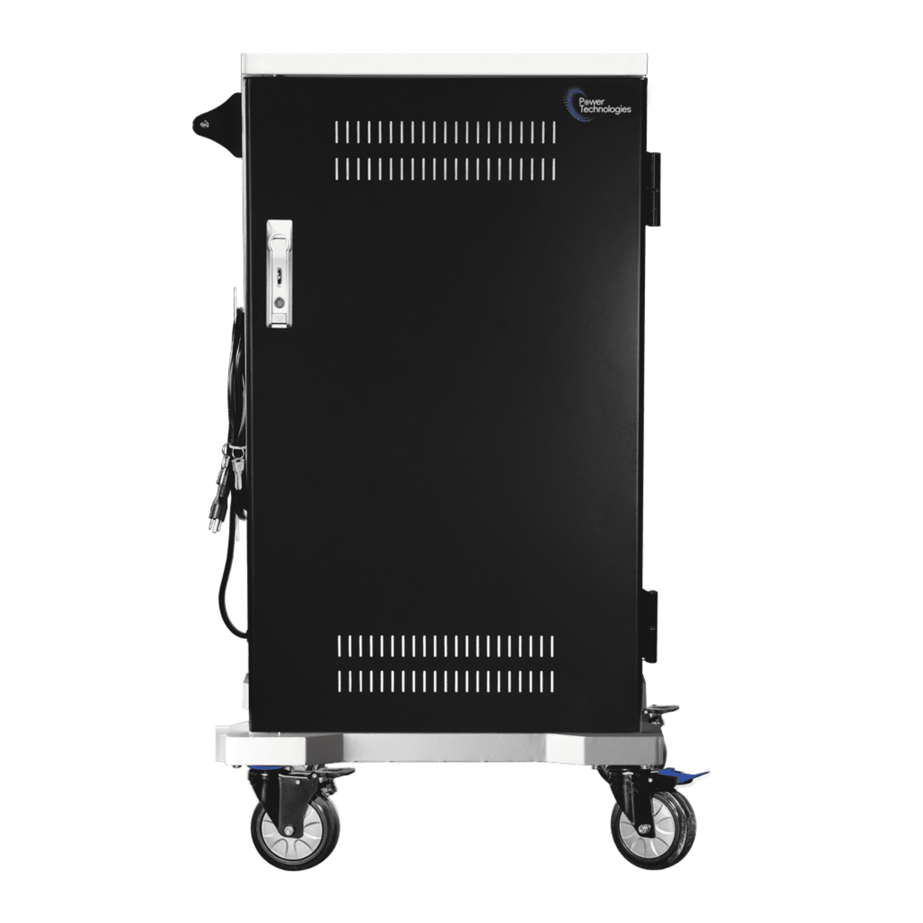 The Power Technologies 36-Bay AC-Slim Secure Charging Cart features Intelli-sense smart charging, external power outlets. This 4 wheel cart further offers 5” directional locking wheels. This feature-rich versatile charging cart sets the industry standard with its secure, safe and efficient charging.