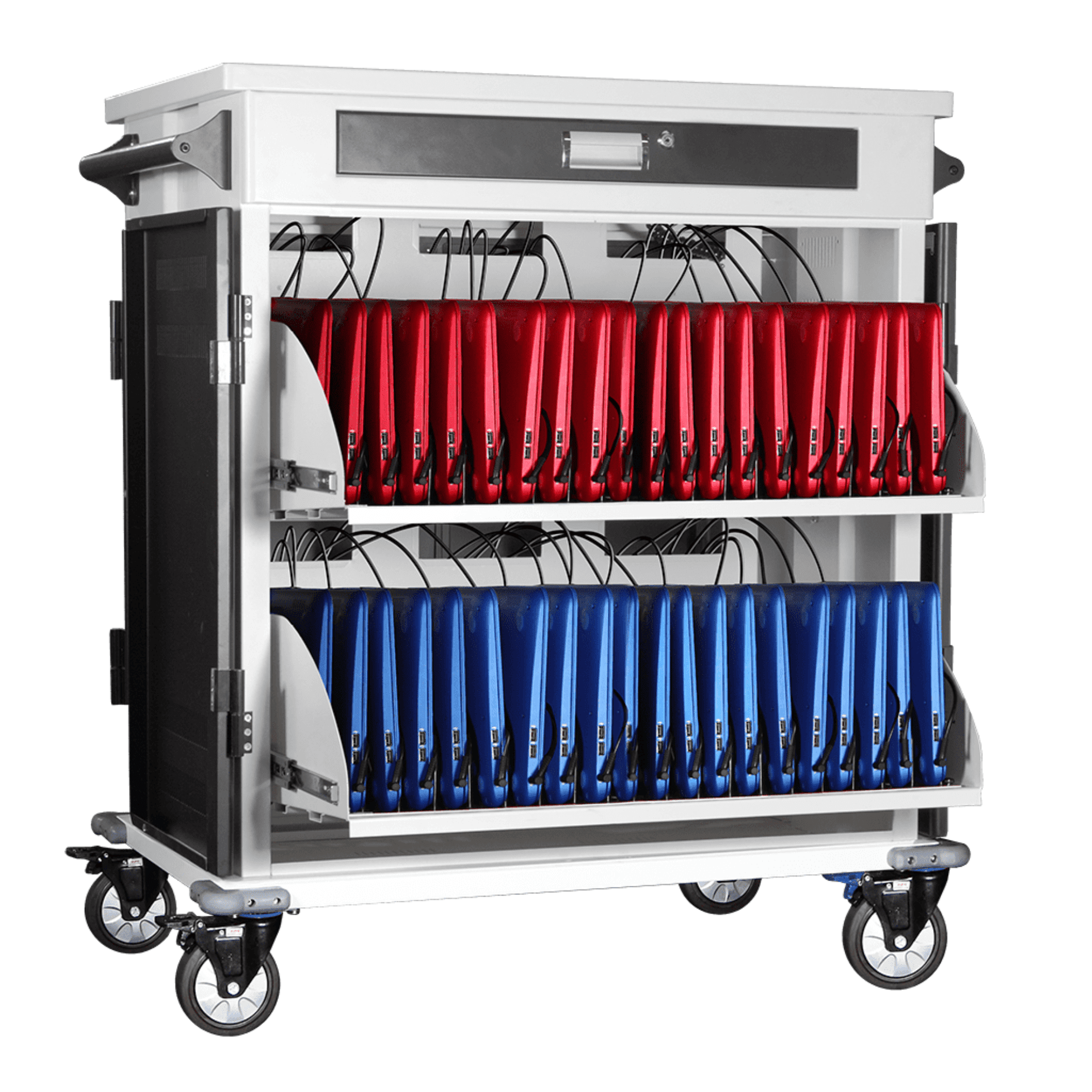 Designed to charge, secure and transport up to 40 Chromebooks, laptops or tablets, plus a “instructors device.”