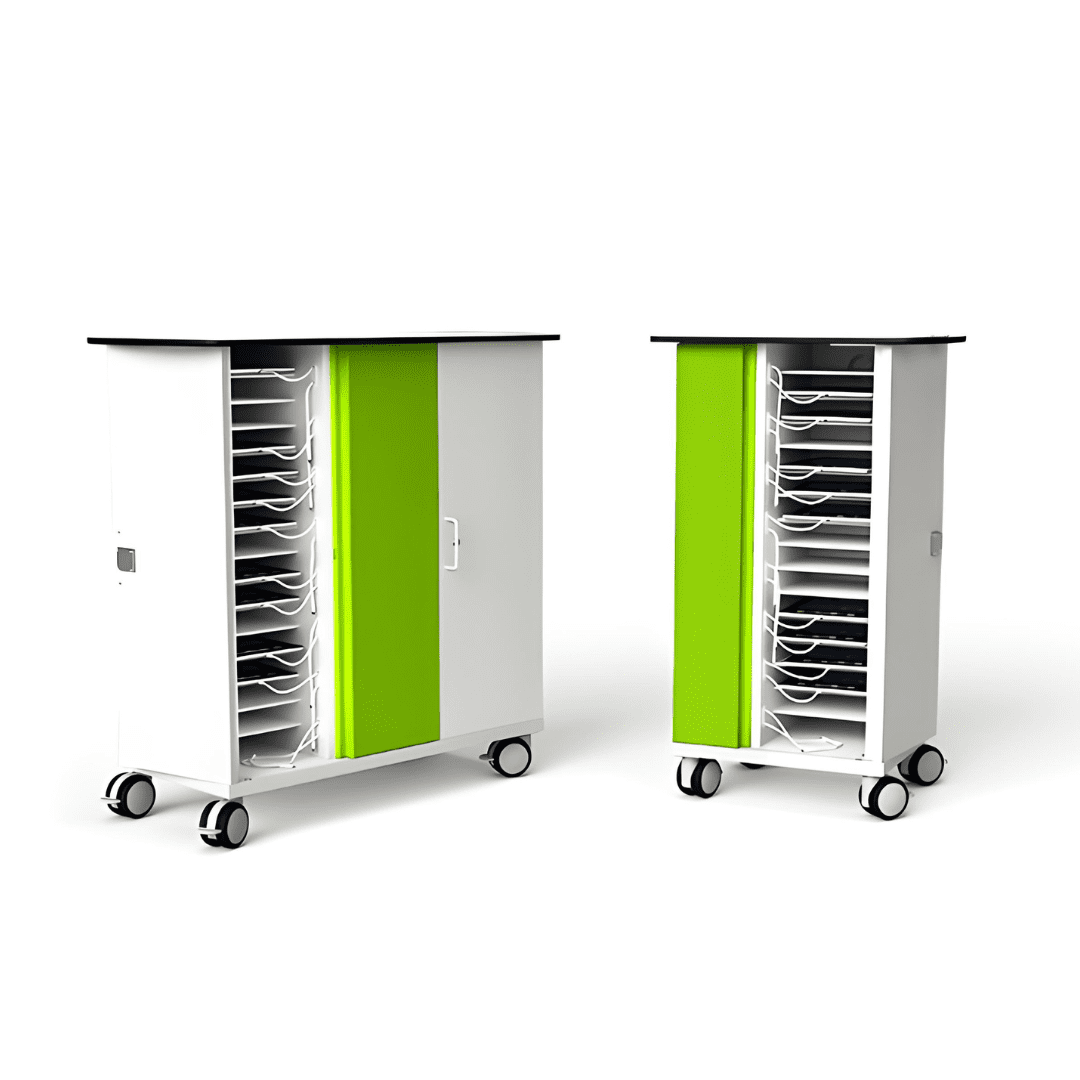 The Zioxi iPad and Tablet 16 Bay USB-C Network Trolley is a mobile charging solution for schools that provides simultaneous charging and network connectivity for up to 16 iPads or tablets. This network trolley is connected to a LAN via an Ethernet patch cable. Each individual iPad/Tablet is connected via a single USB-C cable providing both power and data, and enabling remote management of all connected devices. iPads and tablets are stored horizontally on shelves making access easy and hassle free.