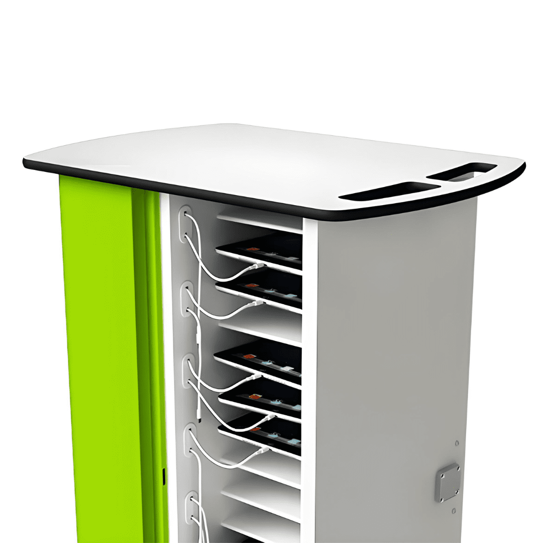 Provides charging and network connectivity via device USB-C ports with secure storage for 16 iPads/tablets