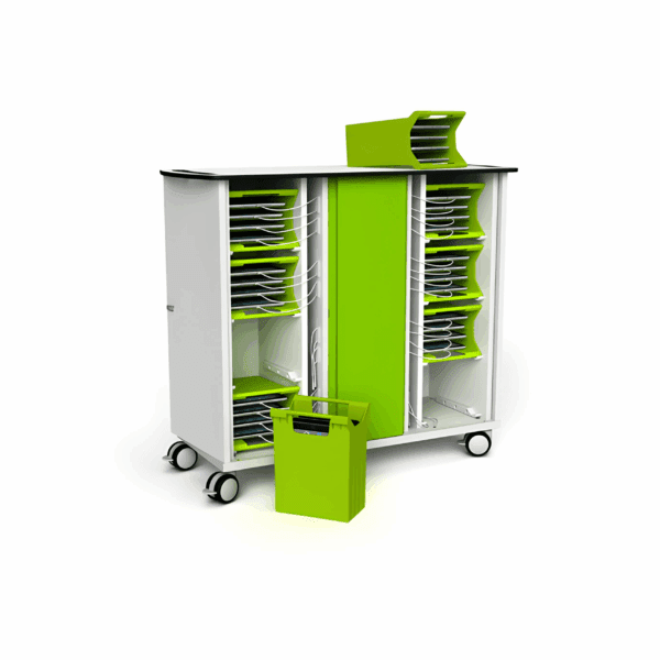 The Zioxi onView2 32 Bay iPad Basket Charging Trolley with carry baskets offer an affordable, low-carbon solution for charging, managing, and storing 32 iPads with screens up to 11″. Each portable basket holds 4 iPads, and the durable, easy to carry one piece design provides excellent protection for your devices. AC chargers are required but not included. Zioxi onView technology features an Energy Optimiser that helps reduce energy consumption, take advantage of low-cost and low-carbon electricity, and extend battery life. It also includes automatic scheduling, customizable rule-based alerts, such as notifications if trolleys aren’t plugged in at the end of the day or have completed charging and detailed status and usage insights. Users can track carbon footprint history, electricity costs, trolley locations on a map, and overall charging trolley usage.