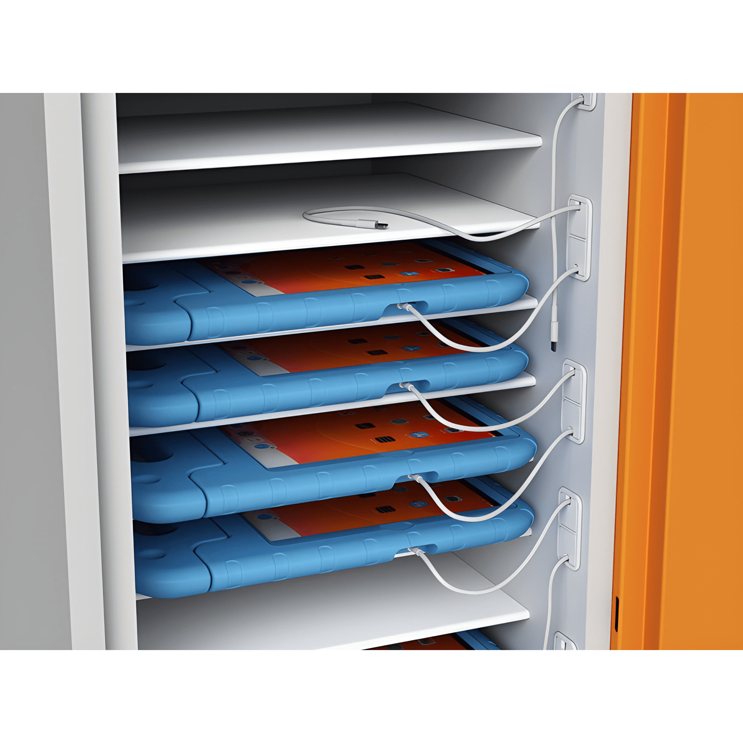 External LED indicators make it easy to monitor iPad presence and charge status of each shelf at a glance